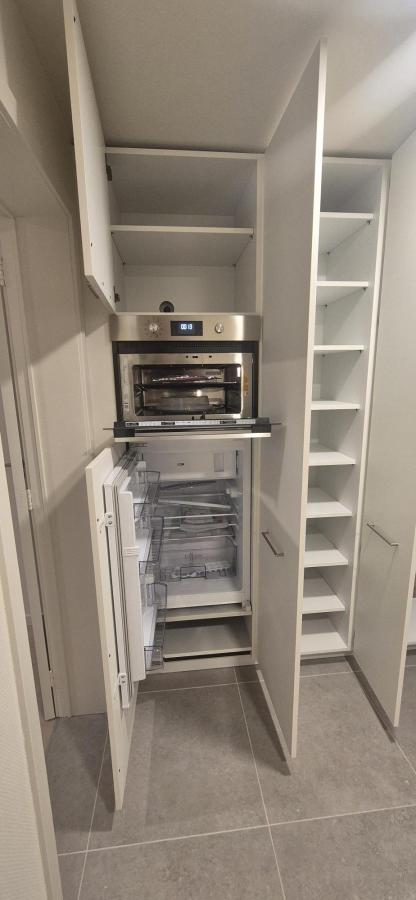 - Volledig nieuwe keuken uitgerust met koelkast, combi-oven, kookplaat en dampkap