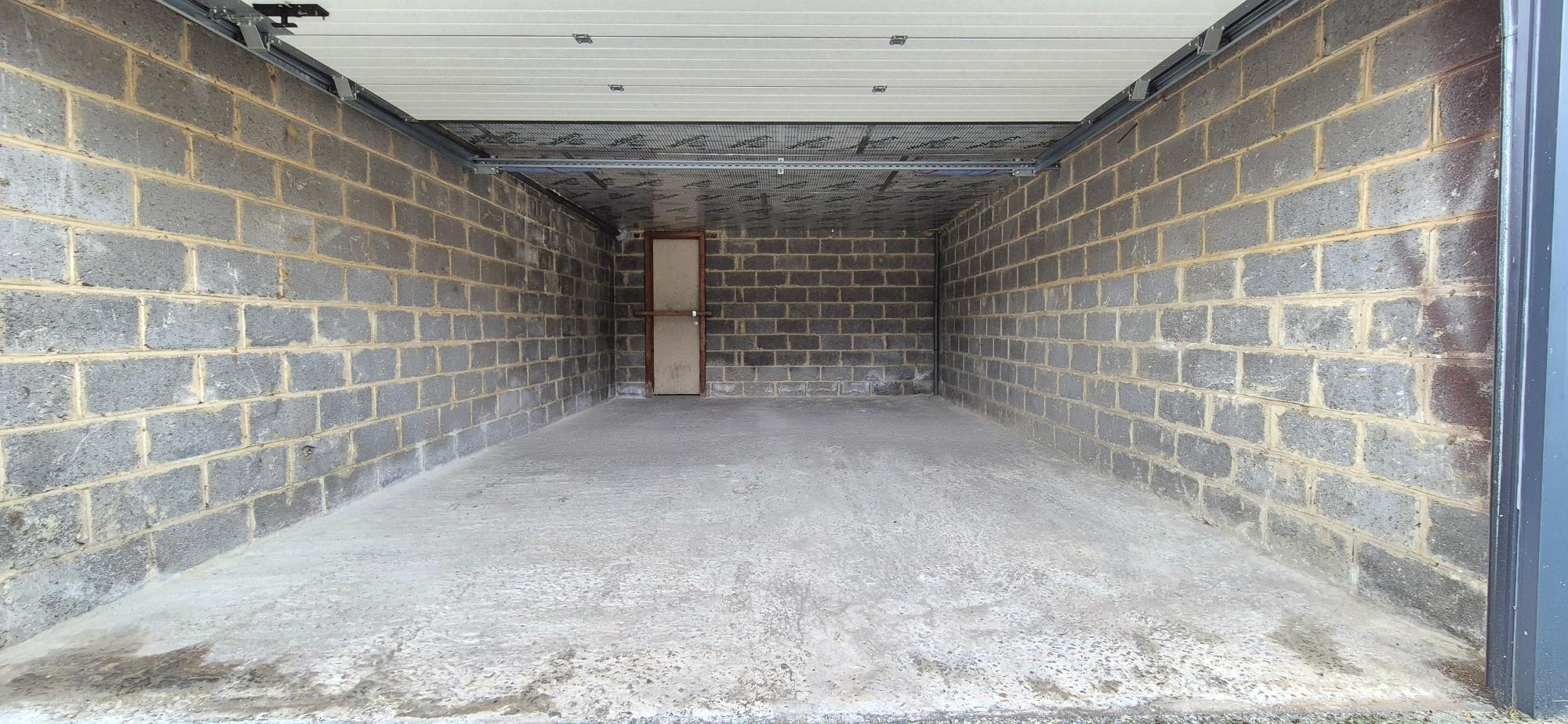 Met sectionale poort. Grote garage: breedte: 4m op een diepte: 6,5m