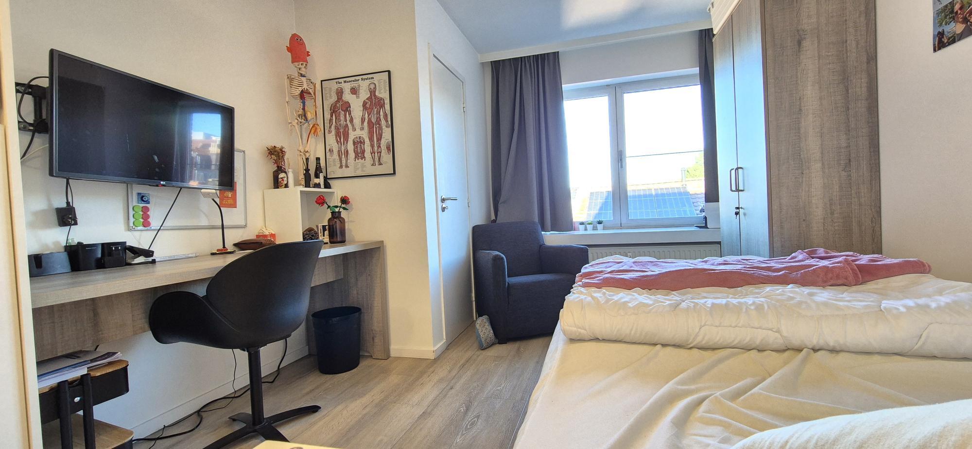| Leefruimte | bemeubeld met bed, buro, burostoel, zetel |
